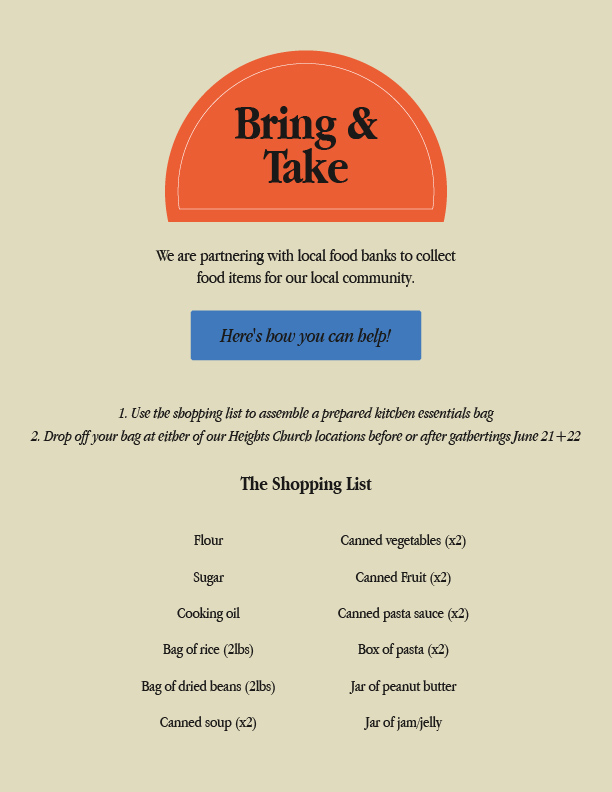 Summer of Service aims to highlight areas of need within our community, creating ways that our Heights Family can come alongside our community to love and support them.