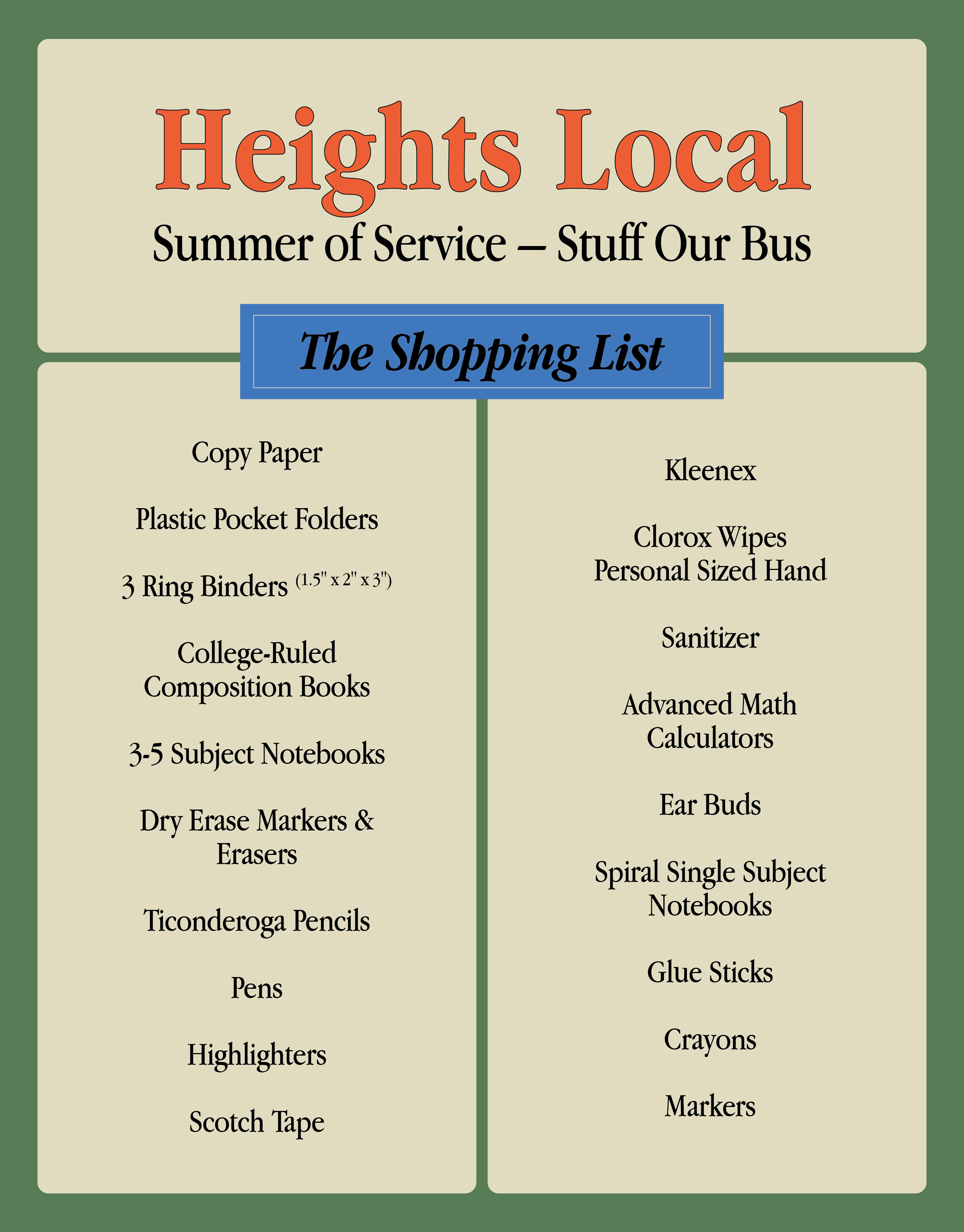 Whether you go shopping in person or online, you can drop off school supplies at either of our locations on July 19 & 20.